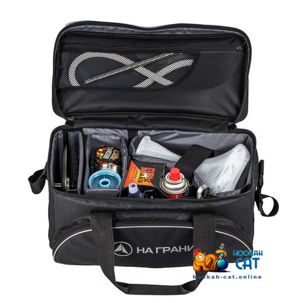 Сумка для кальяна На Грани 2.0 Черная - это прочная сумка, выполнена из водоотталкивающего материала Оксфорд 600D. Минималистичный дизайн с уникальной конструкцией. Сумка очень вместительна, но при этом компактна - в нее с легкостью поместиться большинство разборных кальянов. Продуманная эргономика и легкая доступность всех предметов еще один плюс этой сумки. Сумка сама по себе прочная, а ручки продуманы так, что имею твердую вставку для сохранения формы, а так же у нее регулируются лямки и ее удобно будет носить через плечо;)