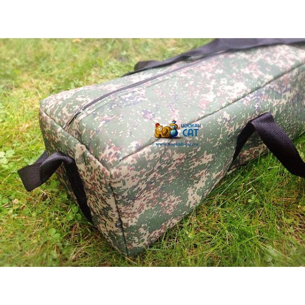 Сумка для кальяна Vintage Камуфляж 90 см - это сумка, из прочного непроникаемого материала (оксфорд), с поролоновым наполнением. Сумка не промокает, прошита прочными нитками и усилена швом на оверлоке. Внутри есть разъемные крепления для колбы и шахты (ремни с замком), а также очень удобные кармашки для чашек, угля табака и прочих аксессуаров. Стенки из двойного поролонового слоя. Также оснащена лямками для ношения и молнией.