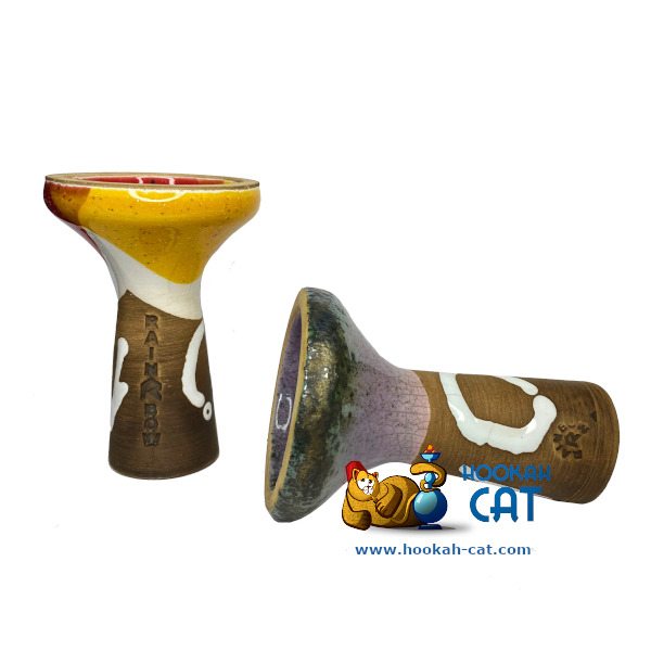 Чаша для кальяна Rainbow Glaze Volcano Classic (Рейнбоу Глазурь Вукан Классика) - красивые и качественные чаши ручной работы. Изготовлены из белой глины. Сверху покрыты высококачественной глазурью и прошедшие технологию молочного обжига. Каждый дизайн чаши уникальный, поэтому встретить на рынке две или более полностью идентичных - практически невозможно. Подходят хорошо для более жаростойких и влажных табаков за счет тонких стенок и плоского дна, и классического прямотока. От модели Premium отличает больший диаметр чаши, но меньшая глубина. Так же могут похвастаться равномерным прогревом.