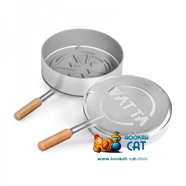 Калауд Watta Easy (2 ручки, крышка) - новый качественный калауд выполнен из нержавеющей стали AISI-304. Вмещает в себя до 4-х углей размером 25 мм. Обладает циркуляцией воздуха при которой уголь не затухает. Диаметр 76мм, а высота 20мм.