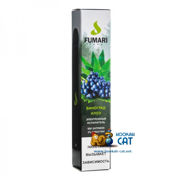 Одноразовая электронная сигарета Fumari (Фумари) Виноград Алоэ 800 затяжек - девайс, изготовленный по типу ингалятора, со встроенным аккумулятором, но при этом перезарядить или перезаправить его нельзя. Рассчитан на 800 затяжек и имеет при этом вкус сладкого винограда с освежающими нотами алоэ.