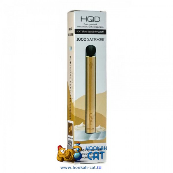 Одноразовая электронная сигарета HQD Melo Coctail White Russian (Коктейль Белый Русский) 1000 затяжек - девайс, изготовленный по типу ингалятора, со встроенным аккумулятором, но при этом перезарядить или перезаправить его нельзя. Рассчитан на 1000 затяжек и имеет вкус всем известного напитка на основе сливочно-кофейных нот!