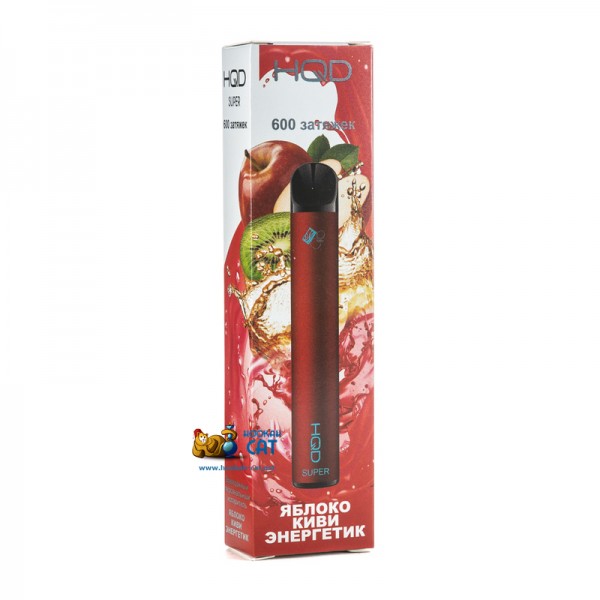 Одноразовая электронная сигарета HQD Super Energy Apple Kiwi (Энергетик Яблоко Киви) 600 затяжек - девайс, изготовленный по типу ингалятора, со встроенным аккумулятором, но при этом перезарядить или перезаправить его нельзя. Рассчитан на 300 затяжек и имеет при этом вкус популярного сладкого и сочного энергетика вкупе с терпким киви и кисленьким яблоком. Довольно интересное и удачное сочетание!