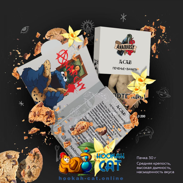 Табак для кальяна Anarhist ACAB (Анархист Печенье Ваниль) 30г Акцизный - вкус печенья с сахарной пудрой и нотками ванили, идеальное десертное сочетание.