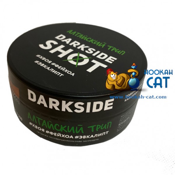 Табак для кальяна Dark Side Shot Алтайский Трип (Дарк Сайд Шот) 120г Акцизный - необычный и оригинальный микс, который не оставит равнодушным! Кислый фейхоа с преобладающими нотками сладости, а на фоне играет терпкость освежающего эвкалипта с травянистым хвойным послевкусием. Очень интересно, а самое главное - вкусно!