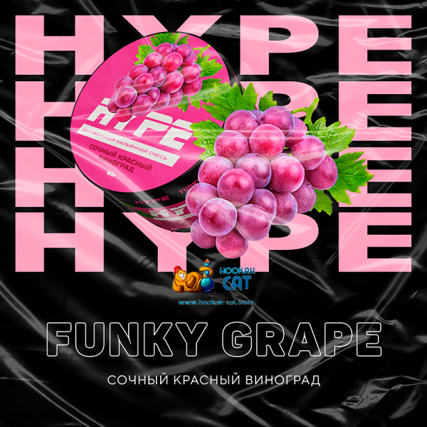 Бестабачная смесь для кальяна Hype Funky Grape (Чайная смесь Хайп Красный Виноград) 50г - сочный красный виноград прямо в вашей чашке - насыщенный, сладкий и немного освежающий.