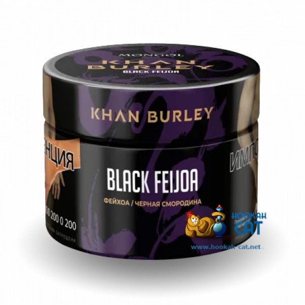 Табак для кальяна Khan Burley Black Feijoa (Хан Берли Фейхоа Черная Смородина) 40г Акцизный - один из топовых вкусов Хана! Классное сочетание травянистой экзотической фейхоа, со сладкой, в меру кисленькой черной смородины. Курится в соло просто божественно! А при желании можно добавить немного холодка.