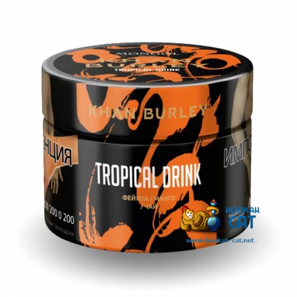Табак для кальяна Khan Burley Tropical Drink (Хан Берли Фейхоа Манго Чай) 40г Акцизный - тропическое наслаждение с чайными мотивами заказывали? Вот оно! Травянистый с легкой сладостью фейхоа, сладкий и насыщенный манго и все это скрашено приятными чайными нотами. Одним словом - идеальный тропический чай, в которой при желании можно добавить немного свежести и кайфовать!