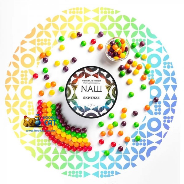 Табак для кальяна NАШ SKИТЛZZ (НАШ Скиттлз) 40г Акцизный - вкус из миксологической линейки - помните какие на вкус легендарные и популярные конфетки Skittles? Вот тут в точности именно так! Кисло-сладкий вкус, не перенасыщенный и довольно многогранный.