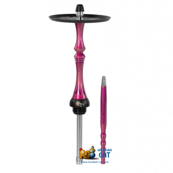 Кальян среднего размера (высота с колбой примерно 55см), но при этом шахта сделана из нержавеющей стали, а корпус кальяна из анодированного алюминия и немецкого полиацеталя. Мундштук абсолютно такой же как у всем известного Model X. Все очень качественно покрашено, включая блюдце, на котором сделана крутая гравировка. Сам кальян покрашен в очень красивый сероватый переливающийся цвет, с блестками.