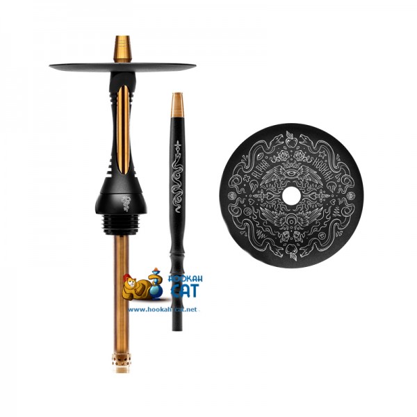 Кальян Alpha Hookah Model S Erida (Альфа Хука Модель С Эрида) Limited Edition - лимитированная версия дизайнерской модели с ассиметричной продувкой, названная в честь богини раздора и хаоса. Продувка реально очень крутая - дым выходит из отверстий в основании кальяна прямо под блюдце и очень красиво по нему расползается. Прямо бомба! Кроме того в накладке (как у Альфы Х) сделан вырез и шахта как бы выходит из нее наружу. Model S Erida украшают гравировки по мотивам древнегреческой мифологии, а на коробке рассказана легенда о "яблоке раздора". Сама шахта покрыта золотистым анодированием, что придает кальяну свой определенный стиль.