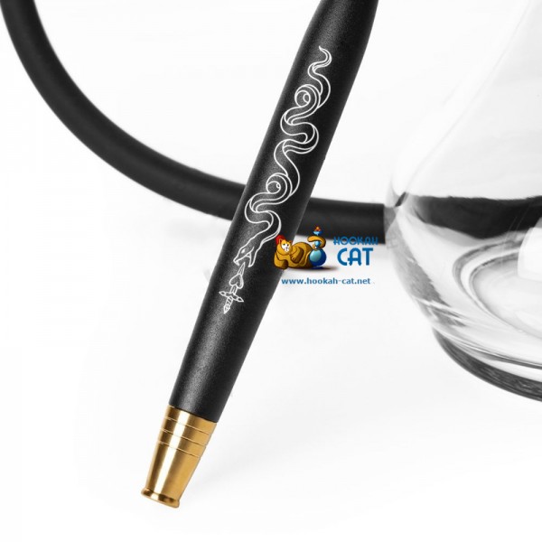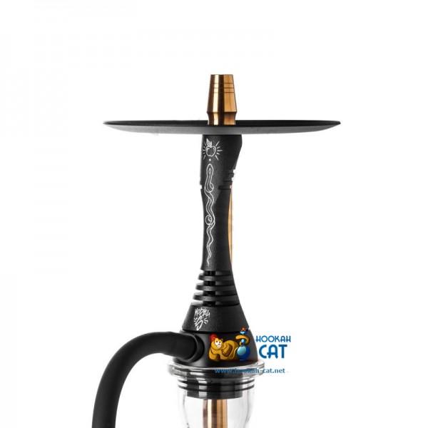 Кальян очень небольшого размера - его высота всего то около 40 сантиметров - при этом шахта и мундштук сделаны из нержавеющей стали, а корпус кальяна из анодированного алюминия и немецкого полиацеталя. Все очень качественно покрашено, включая блюдце, на котором сделана крутая гравировка.