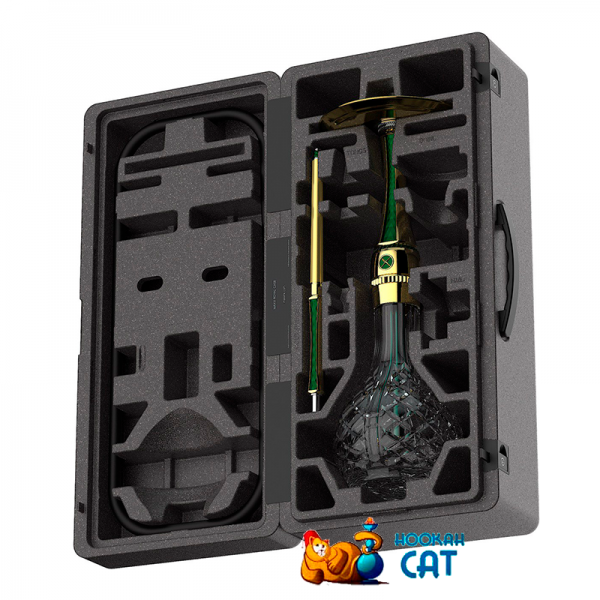 Кальян Maxx Royal Emerald Gold (Макс Роял Зеленый Золотой) - новая премиальная модель кальяна в комплекте с колбой. Изготавливается из нержавеющей стали с титановым покрытием. Оснащен новой системой воздушного потока на 360 градусов. В комплект входит мелассоуловитель, что очень удобно! Дизайн невероятно красивый стильная шахта с вставками Diamond, шланг на магните, идеальный мундштук и фирменная резная колба Maxx.