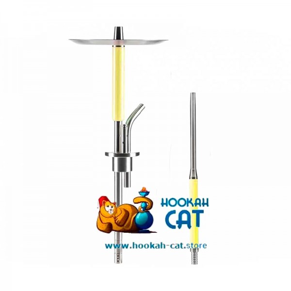 Отличие данного кальяна от модели STM - A - это во-первый, сам его размер. Высота шахты от колбы до верхней части примерно 240мм, а привычная гравировка сменилась цветной вставкой, в данном случае яркого, сочного желтого цвета. Мундштук, кстати, так же украшен подобным образом.