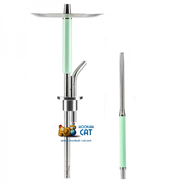 Отличие данного кальяна от модели STM - A - это во-первый, сам его размер. Высота шахты от колбы до верхней части примерно 240мм, а привычная гравировка сменилась цветной вставкой, в данном случае приятного мятного цвета. Мундштук, кстати, так же украшен подобным образом.