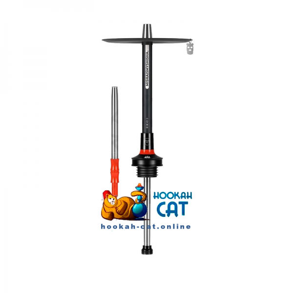 Кальян выполнен из нержавеющей стали, а накладка из полиацеталя. Накладка покрыта стойкой порошковой краской - черного матвого цвета, а вокруг основания яркий красный элемент. Сделан в виде кальяна-палки. Декорирован узорами в уличном стиле, а концепция модели - стиль, свобода и дерзость.