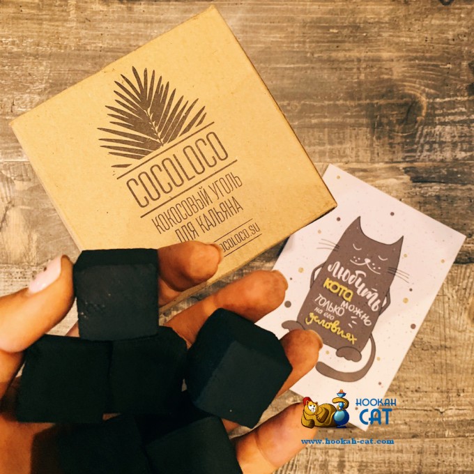 Уголь для кальяна Cocoloco - это уголь, из скорлупы кокосового ореха, который производится в Индонезии. Уголь большого формата 26мм и 25мм, кубики ровные. Он отлично горит, у него нет постороннего запаха при розжиге, также у него мало пепла, по сравнению с другими марками угля. Уголь очень хорош, и прочно занял место дома и в кальянной у Кальянного Кота. Причем именно 26мм идеален для работы и домашнего покура.