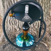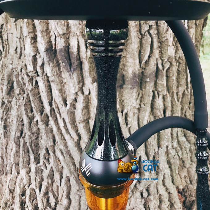 Кальян очень небольшого размера - его высота всего то около 40 сантиметров - при этом шахта и мундштук сделаны из нержавеющей стали, а корпус кальяна из анодированного алюминия и немецкого полиацеталя. Все очень качественно покрашено, включая блюдце, на котором сделана крутая гравировка. Сам кальян покрашен в очень красивый цвет космоса.