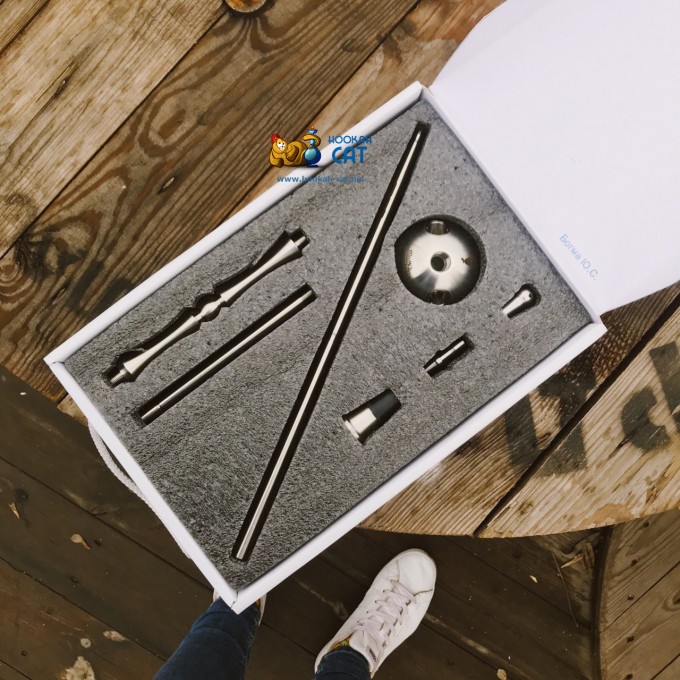 Комплектация модели Mini очень привлекательная: шахта, блюдце, силиконовый шланг с пружиной, мундштук, колба и все это в фирменной коробочке!