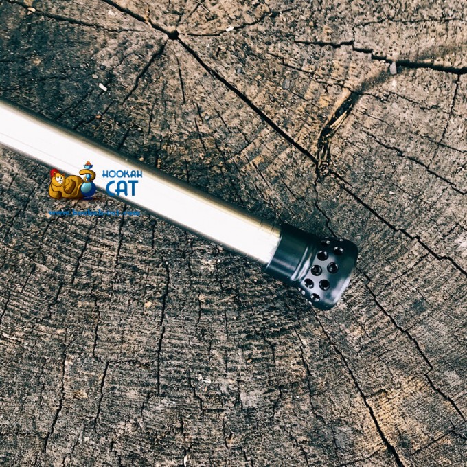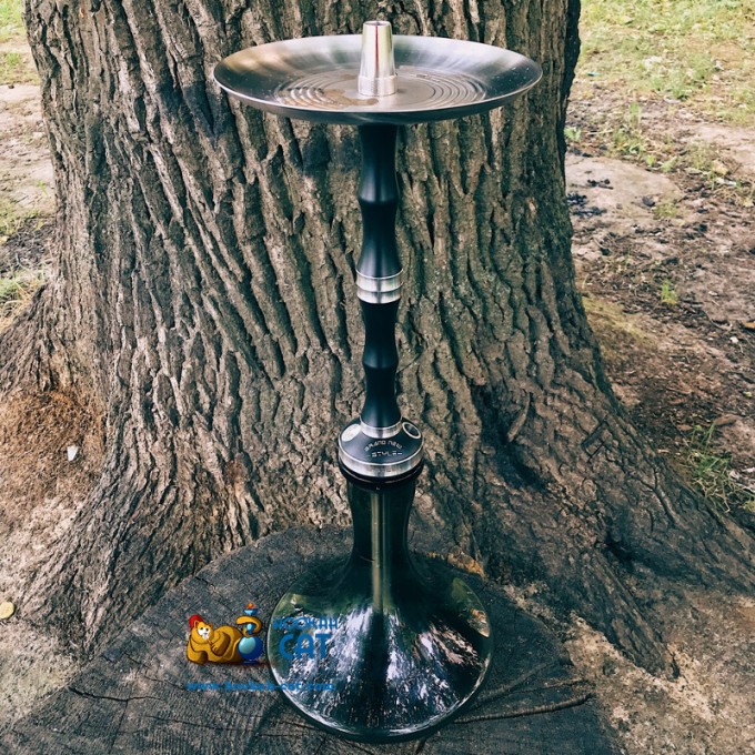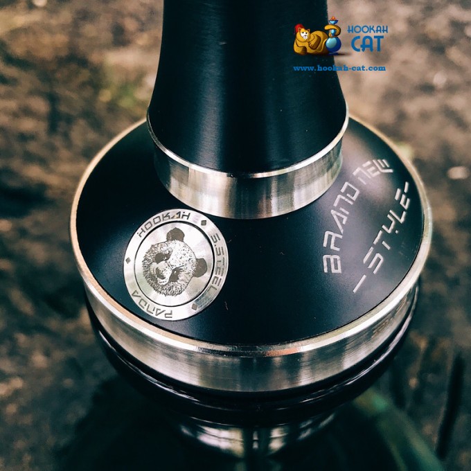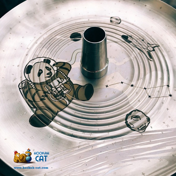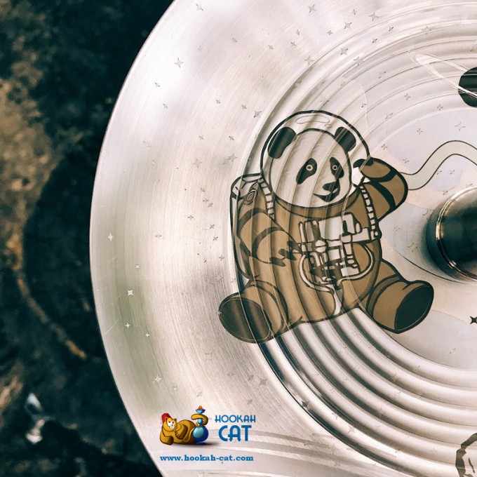 Очень хайтековский дизайн, современные материалы - нержавеющая сталь и корпус из полиацеталя - делают кальян практически бессмертным. Мундштук - также из нержавеющей стали, с удобными насечками - очень классный. На блюдце выгравирована панда в скафандре посреди космоса, также есть гравировка панды на клапане.