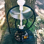 Это нержавейка, полный комплект - с чашкой, шлангом, мундштуком, даже с пружинкой. Тяга средняя, коннектор на притирке, колба на уплотнителе