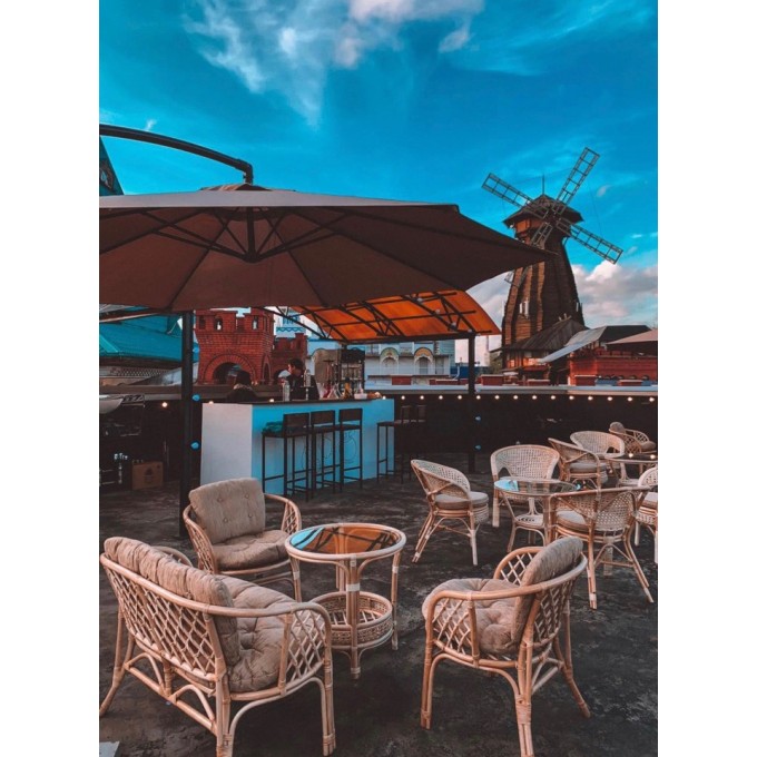 Веранда под открытым небом с впечатляющим видом на Измайловский кремль и парк. С комфортными мягкими креслами, приятным музыкальным сопровождением и конечно же, вкусными, дымными кальянами!