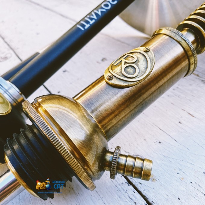 Romatti - более классическая модель в чёрном матовом цвете. Шахта этого кальяна выполнена из нержавеющей стали, а основание из полиацеталя, алюминия и вставками из латуни. Ничего лишнего. Стильно и броско.