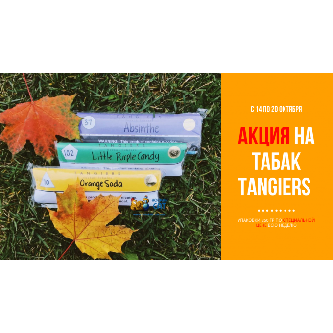 В рамках данной акции, на протяжении всей недели, начиная с сегодняшнего дня, по воскресенье (20 октября) включительно, будет возможность приобрести табак Tangiers в упаковке 250гр по специальной цене!