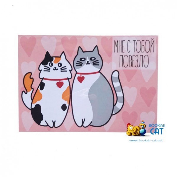 Открытка КОТКА - Мне С Тобой Повезло - если вы решили купить у нас подарок вашим близким, то можно не тратить время на поиски открытки, а сразу взять ее у нас! Теперь у Кальянного Кота есть такие красивые и смешные открытки созданные прекрасной художницей Ариной Родина! На самом деле, чтобы их дарить повод даже не нужен ;)